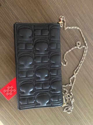 Elegante cartera con cadena de Carolina Herrera. - Diseño acolchado con el monograma CH. - Cadena metálica dorada. - Color negro.