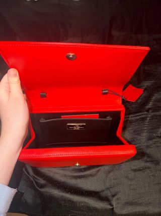 Espectacular este clutch rojo Ferrari de piel y raso de Carolina Herrera.Tiene doble bolsillo ( por arriba también se abre) Está nuevo ( una boda)
