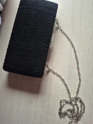 Elegante bolso de mano, perfecto para eventos y fiestas. - Diseño sofisticado. - Cadena metálica plateada para llevar al hombro.