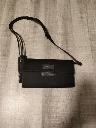 Elegante bolso negro, ideal para ocasiones especiales o el día a día.. - Material exterior de ante y polipiel. - Cierre de solapa con hebilla metálica. - Correa larga ajustable.