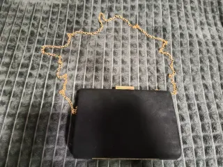 Elegante bolso tipo clutch, perfecto para eventos especiales como fiestas o graduaciones. Su diseño combina un acabado aterciopelado con detalles metálicos dorados. - Material exterior: Suede. - Cadena metálica dorada desmontable. - Cierre de solapa con broche.
