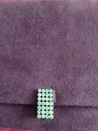 Elegante bolso de mano, perfecto para ocasiones especiales. Puede llevarse como cartera, o colgado al hombro. Medidas 20x12x5cm. - Acabado en suave material imitación ante marrón oscuro - Adornado con un detalle frontal de pedrería verde.