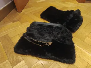 Elegante conjunto de bolso de fiesta y estola a juego, ambos confeccionados en un suave y cálido pelo sintético. - Bolso tipo clutch. - Estola a juego. - Cadena dorada para llevar al hombro. - Se pueden vender juntos o por separado.