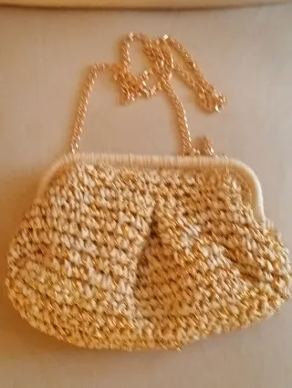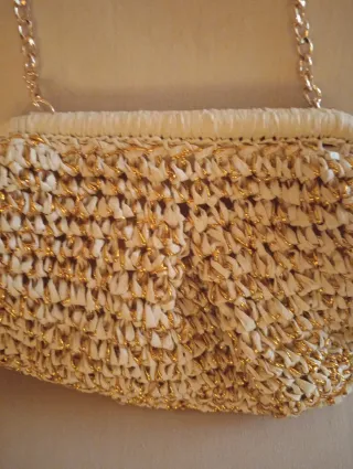 Elegante bolso de fiesta con un diseño tejido en tonos beige y detalles dorados. Perfecto para complementar tu atuendo. - Incluye una cadena dorada para llevarlo cómodamente. - Cierre de broche. Ideal regalo Recoger c Calvet de Bcn Envío x Wallapop