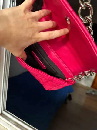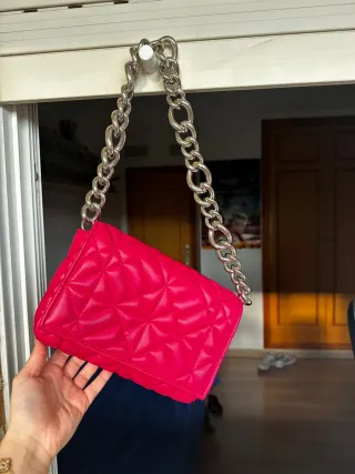 Bolso de mano con un llamativo color fucsia y un diseño acolchado. - Asa de cadena plateada. - Cierre de solapa.