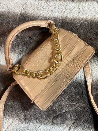 Nuevo, de color dorado , de hombro Hice dos pedidos por error , del mismo bolso. Esta nuevo, sin estrenar.