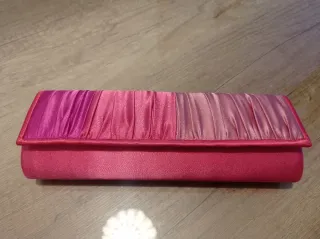Elegante bolso de mano con un degradado de color rosa a fucsia. Ideal para eventos especiales. - Diseño fruncido. - Acabado satinado.