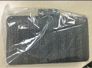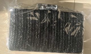 Clutch de rafia negro (rígido) con boquilla en tonos de grises y negro. Medidas 20x11x4cm Sin estrenar, con precinto de la tienda