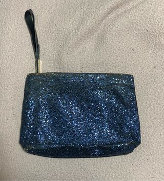 Elegante bolso de mano con un diseño brillante y llamativo. Perfecto para complementar tu atuendo en ocasiones especiales. - Acabado con purpurina azul y plateada. - Incluye una correa de mano.