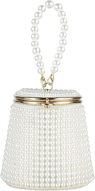 Precioso bolso de mano, ideal para una noche de fiesta. Es de color blanco y está decorado con perlas. - Diseño elegante y sofisticado. - Asa de mano de perlas. - Cierre de broche. - Perfecto para eventos especiales. - B09638R85N