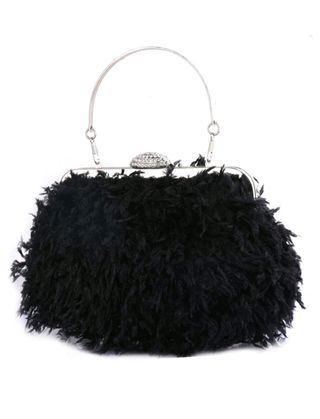 Bolso de mano con un diseño muy suave y acogedor. - Material exterior de pelo sintético. - Cadena metálica en tono cobre para llevar al hombro. - Cierre de botón a presión.