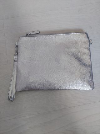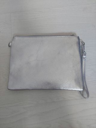 Elegante bolso de mano con un acabado brillante, perfecto para ocasiones especiales. - Diseño moderno y versátil. - Cierre de cremallera. - Incluye una correa para la muñeca. Medidas aprox. 25x20cm. Nunca usado. Cremalleras en perfecto estado.
