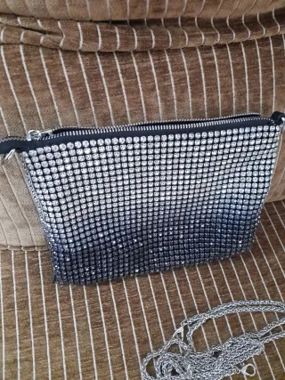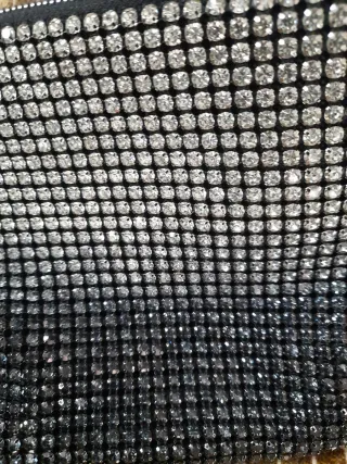 Elegante bolso de mano con un diseño brillante,al ser de cristales en degradado es muy bonito de 24cm por 17 cm la correa es de un metro. - Acabado con pedrería. - Cierre de cremallera.