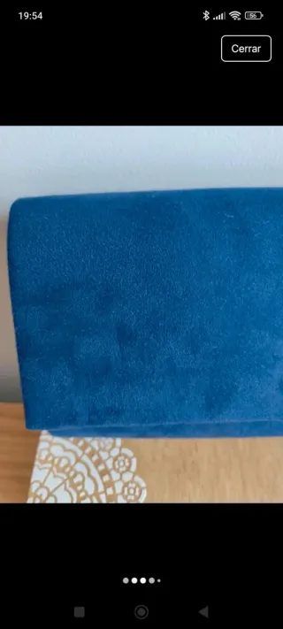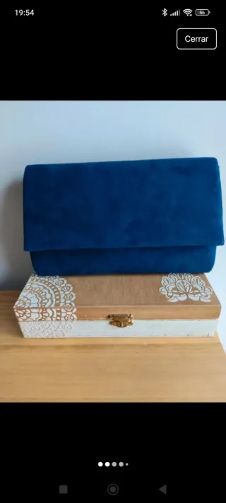 Elegante bolso de fiesta. - Material: ante. - Color: azul vibrante (eléctrico) - Diseño moderno con detalle frontal. En general, en buen estado, ver fotos. Posibilidad de entrega en distintos puntos, consultar