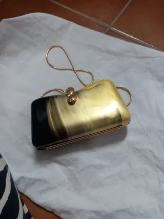 Bolso Clutch Caja Espejo Zara Negro Dorado