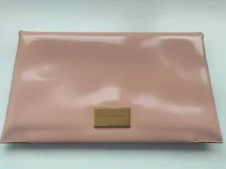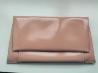 Elegante bolso tipo clutch de Bimba y Lola en color nude. Un accesorio sofisticado para cualquier ocasión. Usado una vez para una boda. - Acabado brillante. - Detalle metálico dorado. - Incluye bolsa protectora.