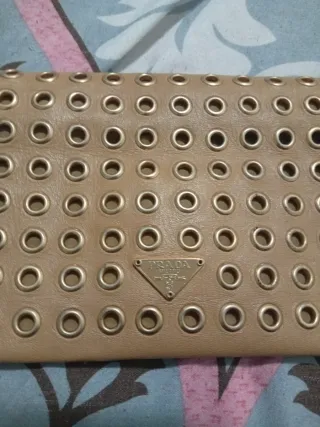 Bolso Clutch PRADA Piel Beige Tachuelas Doradas