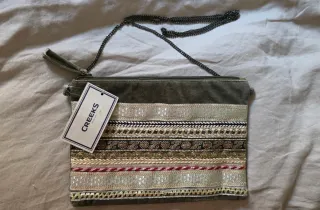 elegante y original bolso de piel en plateado, con detalle dorado y de piedras Se puede utilizar colgado también? Haz una oferta que tengo ganas de venderlo. Muchas gracias !!