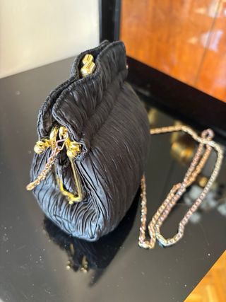 Bolso de terciopelo negro con broche dorado