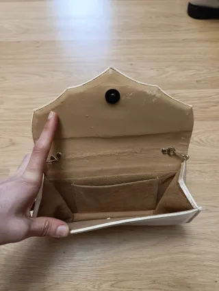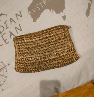 Carterita tipo clutch / neceser, pieza única y nueva. Tejido de lujo con hilo dorado y un leve brillo que en persona se ve espectacular (en foto cuesta captarlo). Cierre con cremallera, ideal para eventos, cena, boda o como cartera elegante para diario. 📏 Medidas: 25,5 cm × 15,5 cm ✅ Estado: nuevo 📦 Envío por Wallapop o entrega en mano. Si quieres, te mando más fotos/detalle del tejido.