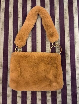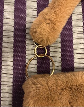 Bolso de pelo suave con un diseño moderno y elegante. - Asa con aros dorados. - Textura de pelo sintético.