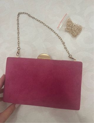 Elegante bolso de mano con cadena dorada. - Acabado metalizado brillante. - Cadena metálica para llevar al hombro.