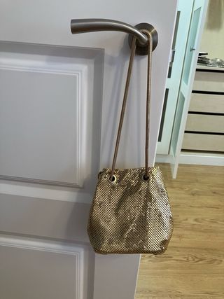 NUEVO Bolso fiesta lentejuelas dorado y beige