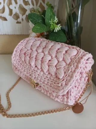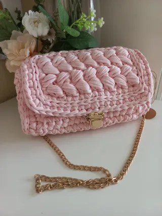 Original bolso hecho artesanalmente a crochet. Cadena y cierre dorado. Más cositas en mi perfil