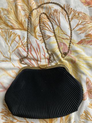 Elegante bolso de mano con cadena dorada. - Diseño plisado. - Cierre de boquilla metálico. - Cadena fina dorada.