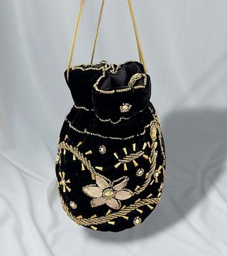 Bolsito estilo bombonera de terciopelo negro y detalles en dorado. Producto nuevo, somos tienda.