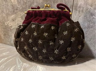 Elegante bolso de terciopelo con detalles bordados. - Cierre de boquilla metálico. - Asa de terciopelo. - Adornos florales y estrellas. - Diseño festivo y detallado.
