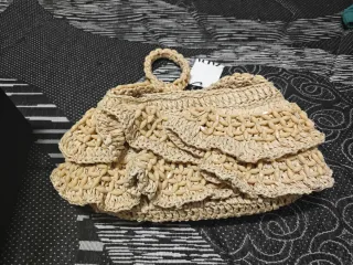 Bolso de mano con un diseño único y llamativo, perfecto para añadir un toque especial a tu look. 🌷 Nuevo sin estrenar sin etiqueta - Elaborado con una red delicada adornada con conchas. - Incluye una cadena metálica para llevarlo cómodamente. - Cierre de cordón ajustable.
