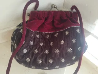En terciopelo, para llevar de hombro o como bandolera con abalorios Color granate