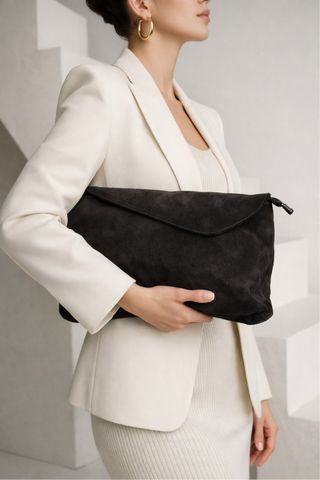 Bolso clutch de ante (marrón oscuro)