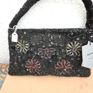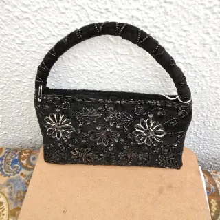 Bolso de mano negro con pedrería