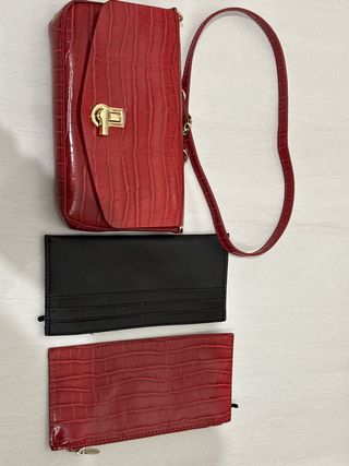 Bolso rojo y cartera negra