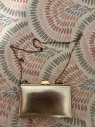 Vendo bolso de fiesta puedes utilizarlo o de mano o con sus asas doradas ,es muy bonito a estrenar,te ahorras cinco euros,viene con su etiqueta cuesta 15€ pero yo lo pongo a 5 El puerto de santa maría ( Cádiz)