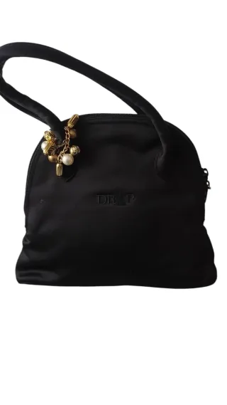 Firma de alta gama. Bolso negro de vestir. Raso natural doble forrado. Logo bordado . Elegante y precioso. Charm opcional incluido. Tiene una pequeña falta (última foto) que puesto apenas se nota. De ahí el precio. Envío inmediato 👌