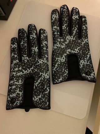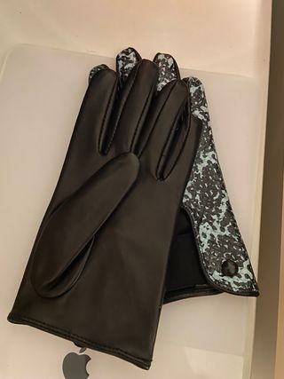 Guantes cortos de piel con estampado animal print en tono azul claro y negro. Talla S. Máximo talla 7. Estado-Nuevos sin etiqueta.NO conservan etiqueta de composición/lavado (cortada, con miras a estrenarlos) y son 100%piel. Disponible en mi armario: clutch a juego. El precio es fijo: No respondo a ofertas absurdas. NO doy medidas ni acepto cambios ni devoluciones. Envíos a través de Wallapop y preferiblemente mediante Inpost.