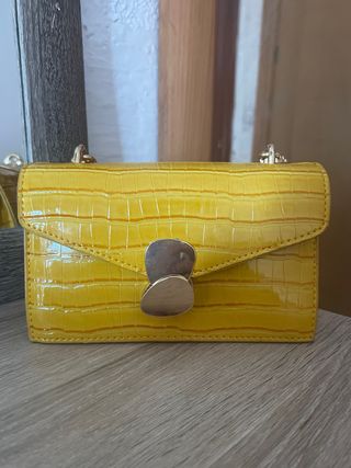 Bolso amarillo mostaza con cierre dorado