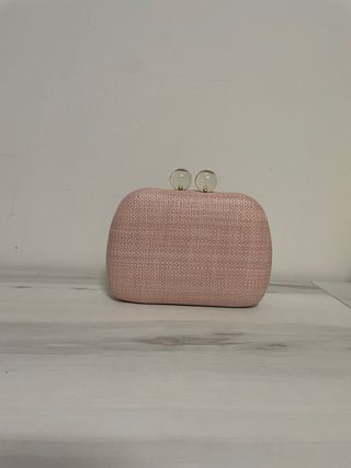 Elegante bolso de mano en tono rosa, perfecto para complementar tu atuendo. - Diseño texturizado. - Cierre superior con dos esferas transparentes.