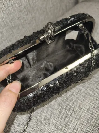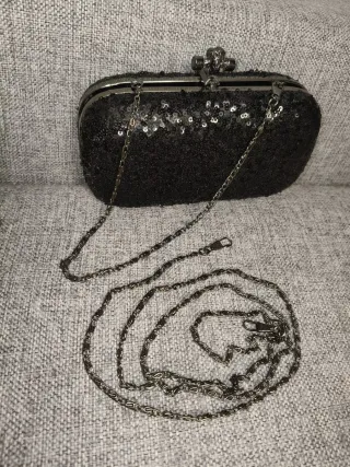 Elegante bolso de mano con cadena. 1 uso solamente - Cubierto de lentejuelas. - Cierre de broche. - Cadena metálica desmontable.