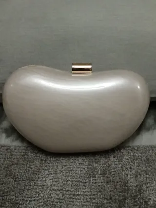Elegante bolso de mano con un acabado perlado y detalles dorados. Su diseño único lo hace perfecto para ocasiones especiales. - Acabado exterior nacarado. - Cierre metálico dorado.