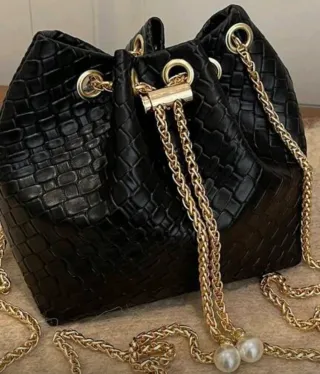 Elegante bolso de mano con un diseño texturizado y detalles dorados. - Cierre de cordón. - Cadena dorada para llevar al hombro. - Adornos de perlas.