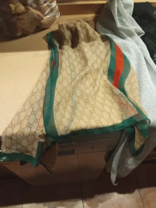 Conjunto de pañuelos con diferentes diseños y texturas. - Pañuelo con estampado de logo. - Pañuelo plateado brillante. - Pañuelo negro con flecos. - Pañuelo con estampado de osos. - Perfectos para estas navidades. Cada uno a 5€.