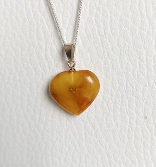 Este colgante presenta un encantador diseño en forma de corazón, elaborado con auténtico ámbar báltico. Colgante de ámbar báltico con fornitura de plata 925. La cadena no esta incluida - Forma de corazón. - Auténtico ámbar báltico.