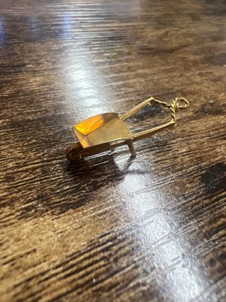 Este colgante es una miniatura detallada de una carretilla. - 1,34 gr aprox - 2,5 cm - Fabricado en oro de 18 quilates. - Presenta un detalle en color ámbar en la parte frontal.