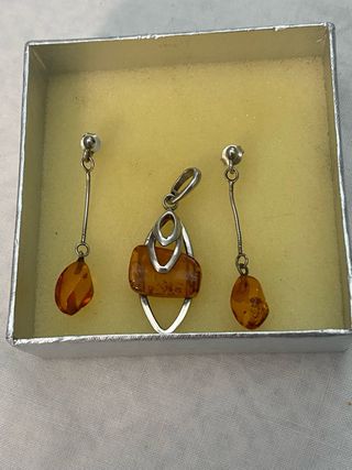 Conjunto de joyería con piezas de ámbar. - Diseño elegante con detalles en plata. - Incluye colgantes y pendientes. Colgantes a 10 euros Pendientes 18 euros