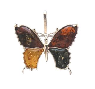 Broche Colgante Mariposa Ámbar Báltico y Plata