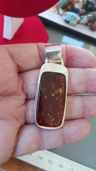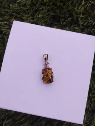 Colgante ámbar con detalles plateados